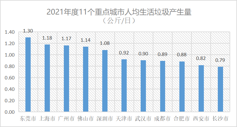 近日,11個重點城市《2021年固體廢物污染環(huán)境防治信息公告》陸續(xù)發(fā)布。數(shù)據(jù)統(tǒng)計顯示,2021年度11個重點城市生活垃圾產(chǎn)生總量達到6064.69萬噸,人均每天生活垃圾產(chǎn)生量突破1公斤(1.0073公斤/人/日)。2021年度,11個重點城市中,人均生活垃圾產(chǎn)生量最高的城市是東莞市,人均每日產(chǎn)生生活...