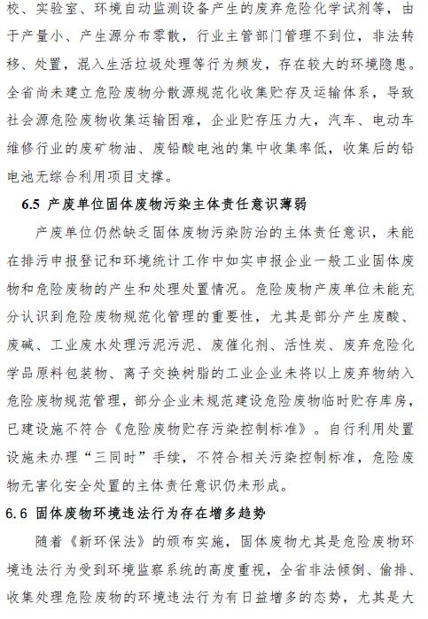 然而,當前我省正處于工業(yè)化和城鎮(zhèn)化快速發(fā)展的階段,產業(yè)結構偏重,固體廢物產生量時空分布不均,固廢處理處置設施與產生量不匹配的問題突出,尤其是工業(yè)固體廢物產生量持續(xù)增加,危險廢物、污水處理廠污泥等固體廢物的處理處置問題未得到根本解決,加上全省固體廢物管理能力十分薄弱,固體廢物污染防治形勢嚴峻。2016 年,國務院印發(fā)《土壤污染防治行動計劃》,對固體廢物污染防治均提出了明確要求,科學制定《固體廢物污染防治規(guī)劃期規(guī)劃》為今后一個時期開展全省固體廢物減量化、資源化、無害化提拱了重要依據,對于確?!耙唤逅驏|流”,實現(xiàn)經濟綠色發(fā)展具有重大現(xiàn)實意義。
