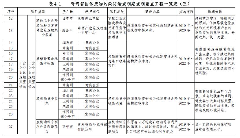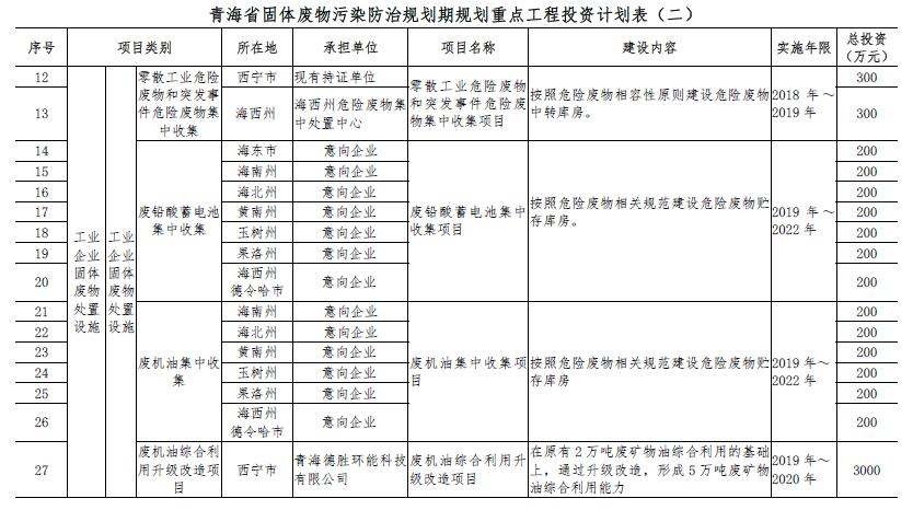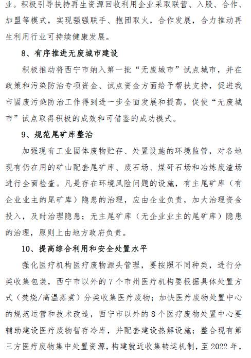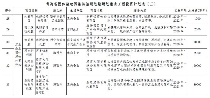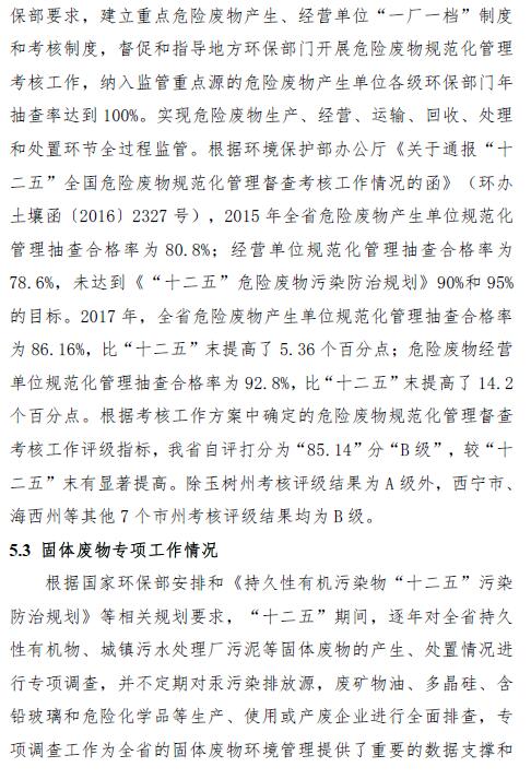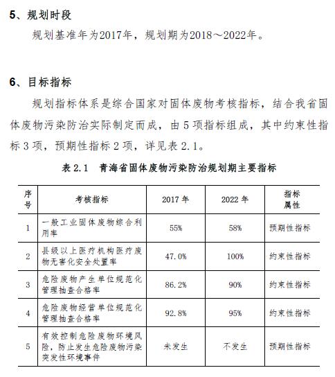 青海省固體廢物污染防治規(guī)劃(2018 年~2022 年)(征求意見稿)