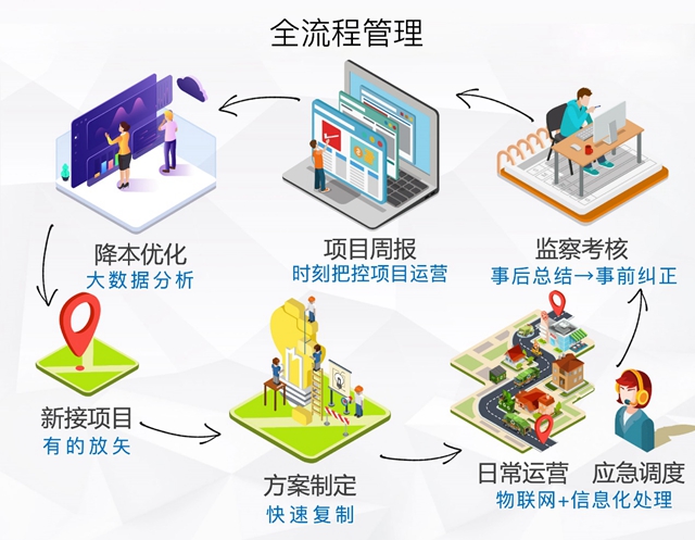 當(dāng)前,環(huán)衛(wèi)服務(wù)企業(yè)普遍存在成本高、過程亂、質(zhì)量差、風(fēng)險大、經(jīng)驗缺的難題?;谧灾鳝h(huán)衛(wèi)車、全流程管理、全平臺應(yīng)用、靈活多變云平臺等獨特系統(tǒng)優(yōu)勢,宇通智慧環(huán)衛(wèi)云平臺直擊五大管理痛點,全面應(yīng)用物聯(lián)網(wǎng)、云計算、GIS地理信息系統(tǒng)、移動互聯(lián)網(wǎng)技術(shù)和大數(shù)據(jù)等前沿技術(shù),基于SaaS模式為用戶提供從成本、過程、質(zhì)量、風(fēng)險和經(jīng)驗積累等多個方面運營管理服務(wù),實現(xiàn)從項目承接、方案定制、日常運營、應(yīng)急調(diào)度、監(jiān)察考核、項目周報到降本優(yōu)化的環(huán)衛(wèi)業(yè)務(wù)全生命流程管控,優(yōu)化管理流程,簡化工作強(qiáng)度,降低對項目經(jīng)理經(jīng)驗的依賴,讓初級水平的項目經(jīng)理都能看得到、講得清、管得好。