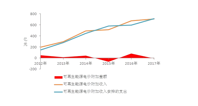 生活垃圾焚燒發(fā)電、生物質(zhì)發(fā)電均屬可再生能源范疇??稍偕茉措妰r(jià)附加收入也被稱為補(bǔ)貼收入,根據(jù)可再生能源法,電網(wǎng)企業(yè)收購(gòu)可再生能源電量發(fā)生的費(fèi)用,高于按照常規(guī)能源發(fā)電平均上網(wǎng)電價(jià)計(jì)算所發(fā)生費(fèi)用之間的差額,由在全國(guó)范圍對(duì)銷售電量征收可再生能源電價(jià)附加補(bǔ)償;自2016年1月1日起,征收標(biāo)準(zhǔn)經(jīng)過(guò)多次調(diào)整后提高至每度電1.9分。財(cái)政部預(yù)算數(shù)據(jù)顯示,可再生能源電價(jià)附加收入在大多數(shù)年份可以覆蓋支出,且每年基本有少量盈余。轉(zhuǎn)變發(fā)生于2015年,可再生能源電價(jià)附加收入高于支出的平衡狀態(tài)被打亂,2015年支出缺口較大,2017年也有微小缺口。伴隨可再生能源項(xiàng)目不斷投產(chǎn)運(yùn)行,該科目的支出壓力將持續(xù)增加。