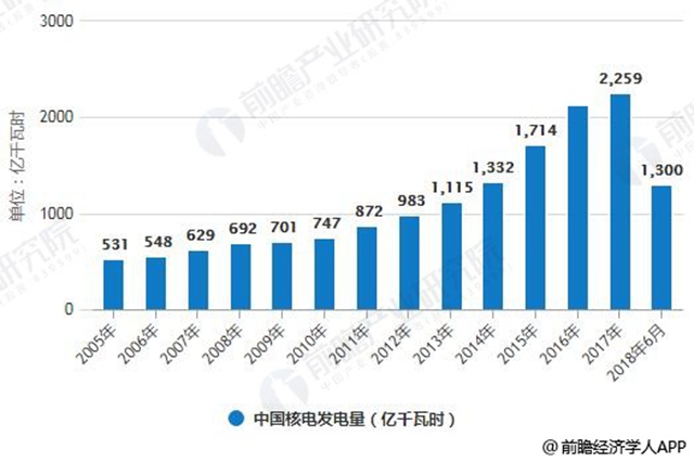 2005-2018年6月中國(guó)核電發(fā)電量統(tǒng)計(jì)情況