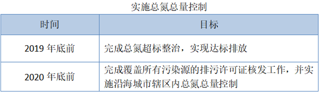 根據(jù)《計(jì)劃》要求,推進(jìn)涉氮重點(diǎn)行業(yè)固定污染源治理,實(shí)行依法持證排污。并根據(jù)排污許可證確定對(duì)應(yīng)涉氮重點(diǎn)行業(yè)總氮總量控制指標(biāo),實(shí)施沿海城市轄區(qū)內(nèi)的行業(yè)總氮總量控制。
