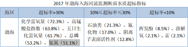 無(wú)機(jī)氮是渤海近岸海域超標(biāo)率最高的超標(biāo)因子。根據(jù)生態(tài)環(huán)境部發(fā)布的《2017中國(guó)近岸海域生態(tài)環(huán)境質(zhì)量公報(bào)》數(shù)據(jù)顯示,渤海近岸海域無(wú)機(jī)氮平均濃度為0.252毫克/升,點(diǎn)位超標(biāo)率為28.4%。是超標(biāo)率最高的超標(biāo)因子。(總氮包括無(wú)機(jī)氮)