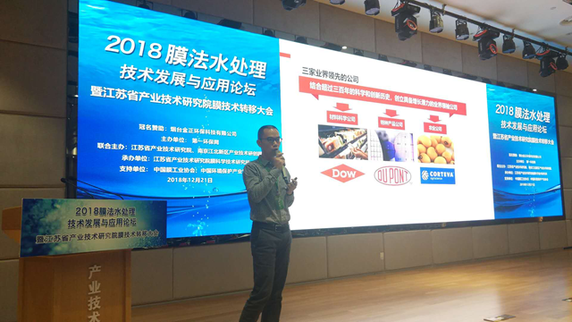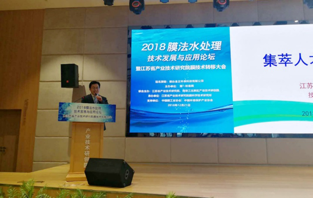 2018年12月21日,由第一環(huán)保網(wǎng)主辦,江蘇省產(chǎn)業(yè)研究院、南京江北新區(qū)產(chǎn)業(yè)技術(shù)研究園聯(lián)合主辦,江蘇省產(chǎn)業(yè)技術(shù)研究院膜科學(xué)技術(shù)研究所承辦,中國(guó)膜工業(yè)協(xié)會(huì)、中國(guó)環(huán)境保護(hù)產(chǎn)業(yè)協(xié)會(huì)共同支持,煙臺(tái)金正環(huán)保科技有限公司獨(dú)家贊助的“2018膜法水處理技術(shù)發(fā)展與應(yīng)用論壇暨江蘇省產(chǎn)業(yè)技術(shù)研究院膜技術(shù)轉(zhuǎn)移大會(huì)”在江蘇省南京市江北新區(qū)產(chǎn)業(yè)技術(shù)研創(chuàng)園騰飛大廈盛大召開(kāi)。
