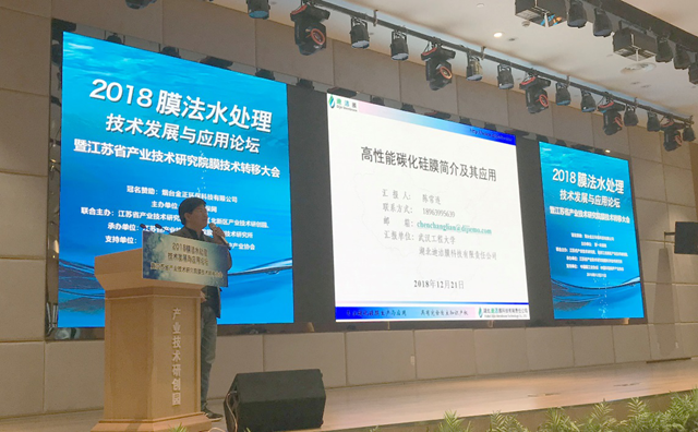 湖北迪潔膜科技有限責(zé)任公司的技術(shù)總監(jiān)陳常連同樣帶來(lái)了精彩的演講,重點(diǎn)介紹了公司在碳化硅陶瓷膜領(lǐng)域的突出創(chuàng)新與技術(shù)發(fā)展,詳細(xì)介紹了碳化硅結(jié)構(gòu)、燒成工藝及性能特點(diǎn),以經(jīng)典的案例入手,充分論證了碳化硅陶瓷膜的分離優(yōu)勢(shì),以及在含油廢水處理、酸性介質(zhì)處理等方面應(yīng)用的廣闊前景與意義。