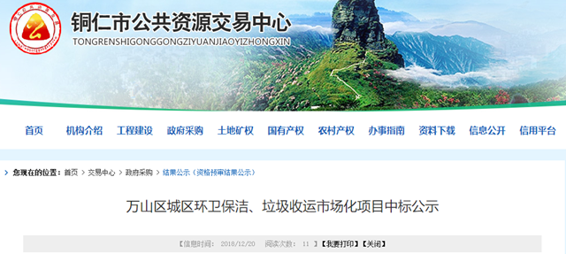 原標題:3105萬/年,家寶園林中標貴州萬山區(qū)城區(qū)環(huán)衛(wèi)保潔、垃圾收運項目