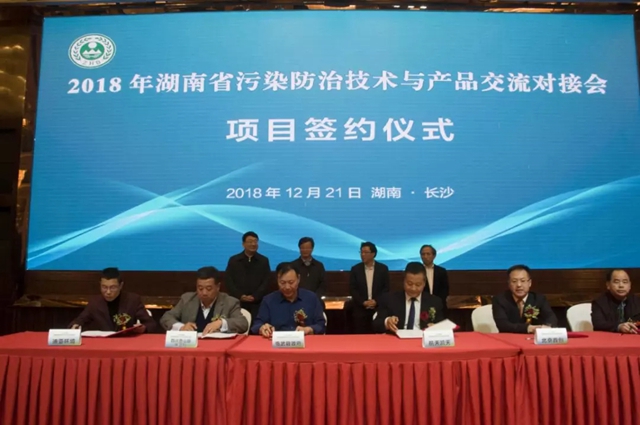 2018年12月21日,由湖南省生態(tài)環(huán)境廳、省人大環(huán)資委、省發(fā)改委、省工信廳、省科技廳主辦,湖南省環(huán)保產(chǎn)業(yè)協(xié)會(huì)協(xié)辦的2018年湖南省污染防治技術(shù)與產(chǎn)品交流對(duì)接會(huì)在長(zhǎng)沙舉行。湖南省人民政府副省長(zhǎng)陳文浩出席并講話,省生態(tài)環(huán)境廳、省人大環(huán)資委、省發(fā)改委、省工信廳、省科技廳等相關(guān)部門(mén)領(lǐng)導(dǎo)參加了對(duì)接會(huì)。對(duì)接會(huì)上,多個(gè)重點(diǎn)項(xiàng)目簽署環(huán)保供需合同,現(xiàn)場(chǎng)簽約額逾20億元。