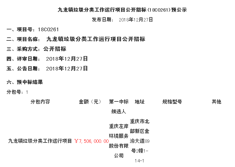 原標題:九龍鎮(zhèn)垃圾分類工作運行項目公開招標(18C0261)預公示