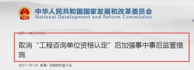 2017年9月22日,國務(wù)院印發(fā)《關(guān)于取消一批行政許可事項(xiàng)的決定》(國發(fā)〔2017〕46號),取消了工程咨詢單位資格認(rèn)定行政許可事項(xiàng),放開工程咨詢市場準(zhǔn)入。這是工程咨詢行業(yè)的重大改革,對加快工程咨詢行業(yè)發(fā)展具有重要意義。