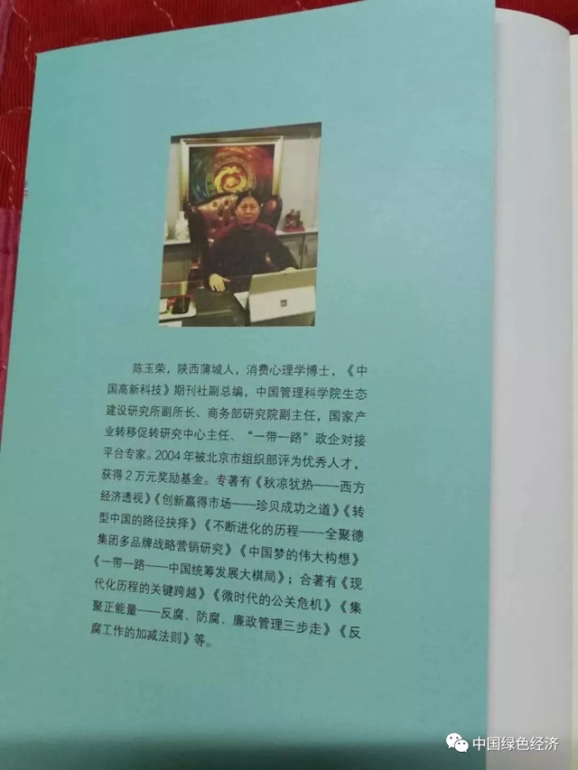 陳玉榮,消費(fèi)心理學(xué)博士、MBA工商管理碩士、經(jīng)濟(jì)學(xué)碩士,曾在原國(guó)家主席李先念同志秘書(shū)、國(guó)家統(tǒng)計(jì)局原局長(zhǎng)李成瑞同志身邊從事過(guò)私人助理工作;在國(guó)家計(jì)委對(duì)外經(jīng)濟(jì)研究所、商務(wù)部國(guó)際經(jīng)濟(jì)貿(mào)易合作研究院、北京大學(xué)城市規(guī)劃研究所等從事過(guò)研究和頂層設(shè)計(jì)規(guī)劃等工作;在中國(guó)企業(yè)報(bào)、中國(guó)信息報(bào)和中國(guó)投資促進(jìn)雜志擔(dān)任過(guò)副主編工作;在著名民營(yíng)企業(yè)匹夫品牌管理集團(tuán)、珍貝集團(tuán)、聯(lián)想集團(tuán)、國(guó)度投資集團(tuán)等從事總裁助理兼企劃部長(zhǎng)工作等。2004年被北京市組織部評(píng)為優(yōu)秀人才稱(chēng)號(hào)?,F(xiàn)任全國(guó)三農(nóng)調(diào)研中心副主任、國(guó)家產(chǎn)業(yè)轉(zhuǎn)移促進(jìn)中心高級(jí)顧問(wèn)等。出版專(zhuān)著作品有《秋涼猶熱:西方經(jīng)濟(jì)透視》、《理想與改革:社會(huì)主義的改革歷程》、《不斷進(jìn)化的經(jīng)營(yíng):全聚德集團(tuán)多品牌戰(zhàn)略營(yíng)銷(xiāo)》、《轉(zhuǎn)型中國(guó)的路徑抉擇》、《中國(guó)夢(mèng)的偉大構(gòu)想》、《一帶一路:中國(guó)統(tǒng)籌發(fā)展大棋局》、《藍(lán)色跨越:中國(guó)海洋強(qiáng)國(guó)的生態(tài)邏輯》等;出版合著作品有:《集聚正能量:反腐、防腐、廉政管理三步走》、《現(xiàn)代化進(jìn)程的跨越:貧富差距與犯罪率》、《微時(shí)代的危機(jī)公關(guān)》、《政府反腐工作的加減法則》等書(shū),發(fā)表關(guān)于綠色經(jīng)濟(jì)、政治、貿(mào)易、投資、管理、營(yíng)銷(xiāo)、戰(zhàn)略規(guī)劃等論文300多篇。新近出版的《一帶一路:中國(guó)統(tǒng)籌發(fā)展大棋局》一書(shū)被國(guó)家新聞出版署列入重大選題備案,歡迎關(guān)注。