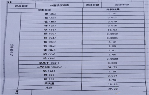 生產經(jīng)理楊聲全提供的一份其于2018年5月27日對廢礦泥自檢的成分報告顯示,廢礦泥中含有鎳、鈷、鉻、銅、鎘、鉛等重金屬,含量較高的還有硫、鐵、二氧化硅、水分等。
