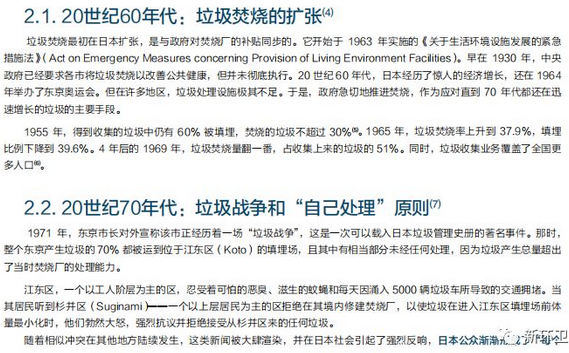 一,“自己處理”的原則。報告簡要介紹了發(fā)生在1970年代的日本國內(nèi)的“垃圾戰(zhàn)爭”和由此引發(fā)并逐漸形成的地方自治體“自己處理”垃圾的原則。筆者認為,盡管現(xiàn)實中日本所謂的“自己處理”的原則更多體現(xiàn)在了每個市在自己的轄區(qū)內(nèi)焚燒垃圾,但從根本上而言,它有助于讓各地方公眾及其政府明確自身的責(zé)任,同時不隨意或強勢地要求其他地方替自己承擔(dān)責(zé)任。在這樣的基礎(chǔ)上,或許能夠倒逼更有效的垃圾減量和分類行動,以及更公平合理地選擇垃圾處置場地。