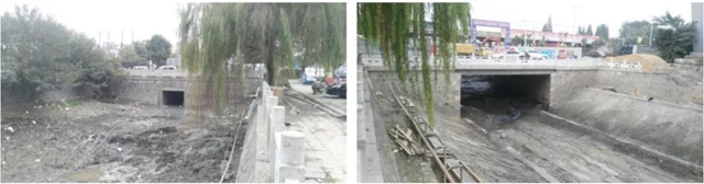 小運(yùn)河沿線存在工業(yè)企業(yè)、居住小區(qū)、城中村、商鋪等,大量污水進(jìn)入河道,加上常年被違章建筑非法侵占、缺乏疏浚管護(hù)、過水涵閘斷面狹小等原因,河道淤積嚴(yán)重,河水嚴(yán)重發(fā)黑發(fā)臭。小運(yùn)河相關(guān)支河污染也比較嚴(yán)重,整體質(zhì)態(tài)不容樂觀。經(jīng)實(shí)地調(diào)查,小運(yùn)河及其支河沿線共有排口294處,其中106處有污水下河,具體為:污廢水直排口71處(生活污水排口55處、工業(yè)污水排口16處),雨水管道混接排污口26個(gè),雨污合流排污口9個(gè)。根據(jù)公眾調(diào)查和水質(zhì)檢測(cè)情況,認(rèn)定小運(yùn)河屬于城市建成區(qū)內(nèi)重度黑臭水體。