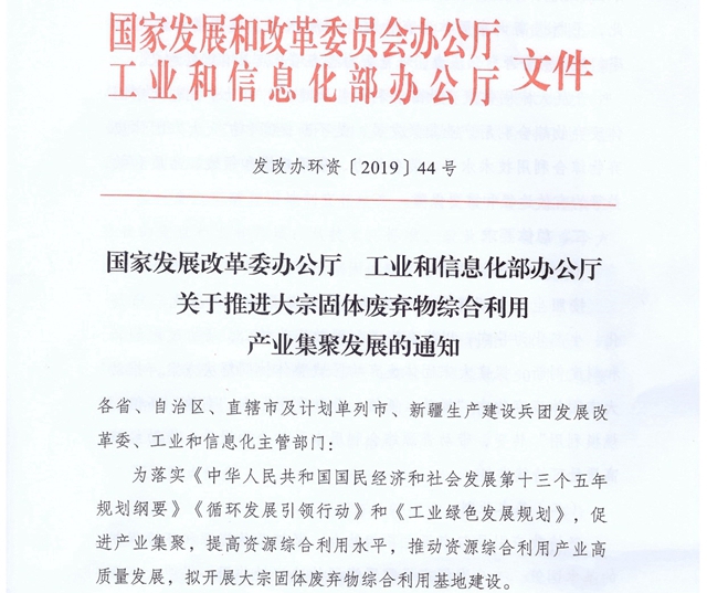 相關(guān)資料下載:國家發(fā)展改革委辦公廳 工業(yè)和信息化部辦公廳關(guān)于推進大宗固體廢棄物綜合利用產(chǎn)業(yè)集聚