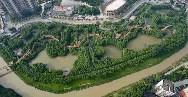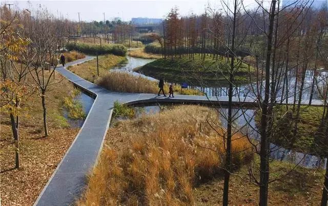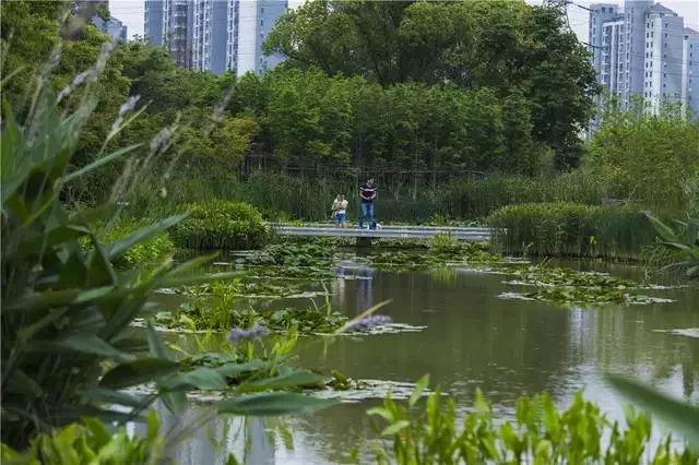 經(jīng)過巧妙的設(shè)計,使魚塘成為水體凈化器,并引入林叢、棧道、廊橋和亭臺, 通過最少的干預(yù),使之成為新城的“生態(tài)海綿”,凈化被污染的運河的水體、緩解城市內(nèi)澇,保留場地記憶,同時為周邊居民提供了別具特色的休憩空間。