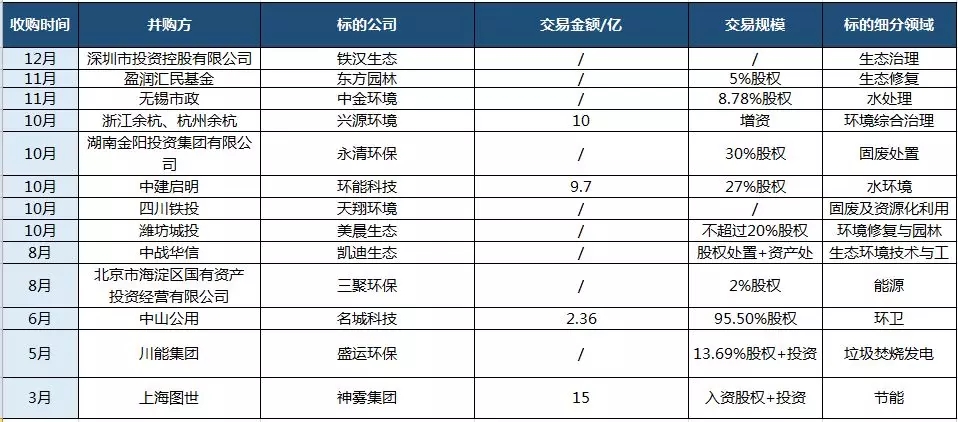 國(guó)資參股企業(yè)并購(gòu)民營(yíng)上市環(huán)境企業(yè)統(tǒng)計(jì)表
