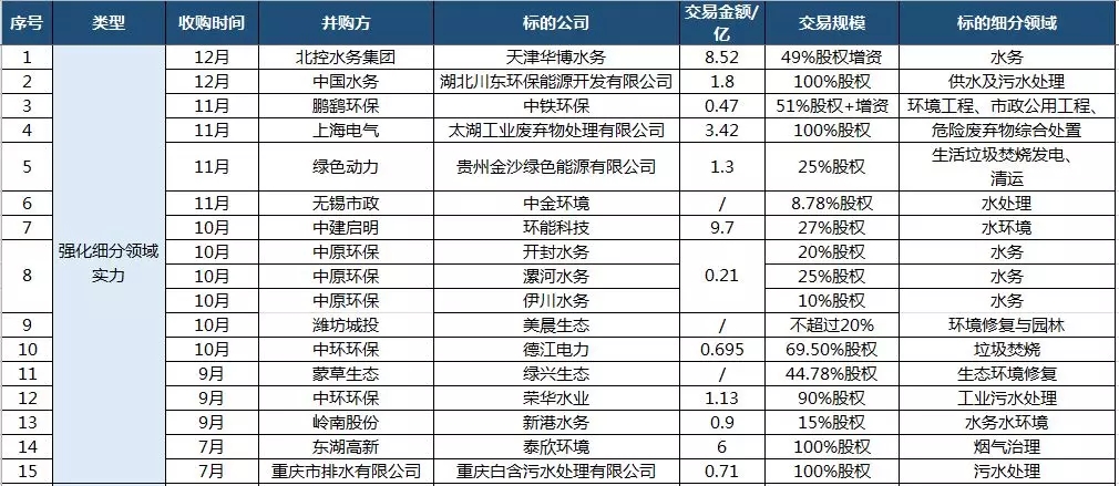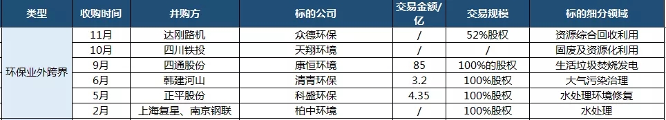 2018環(huán)保業(yè)外跨界并購(gòu)