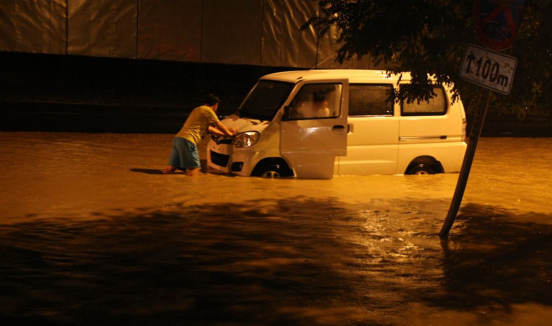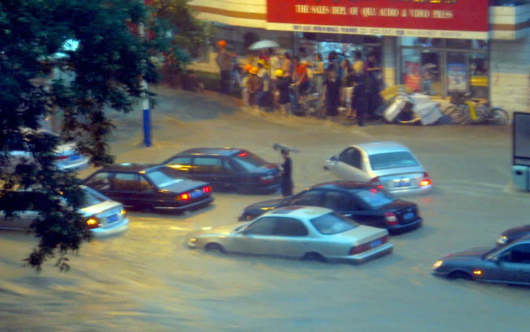 這是2007年,濟(jì)南的一場暴雨。151毫米的雨水,一到兩個小時(shí)內(nèi),嘩一下都下來了,在馬路上形成一道道洪水。很多車被沖散了,也有人失去了生命。