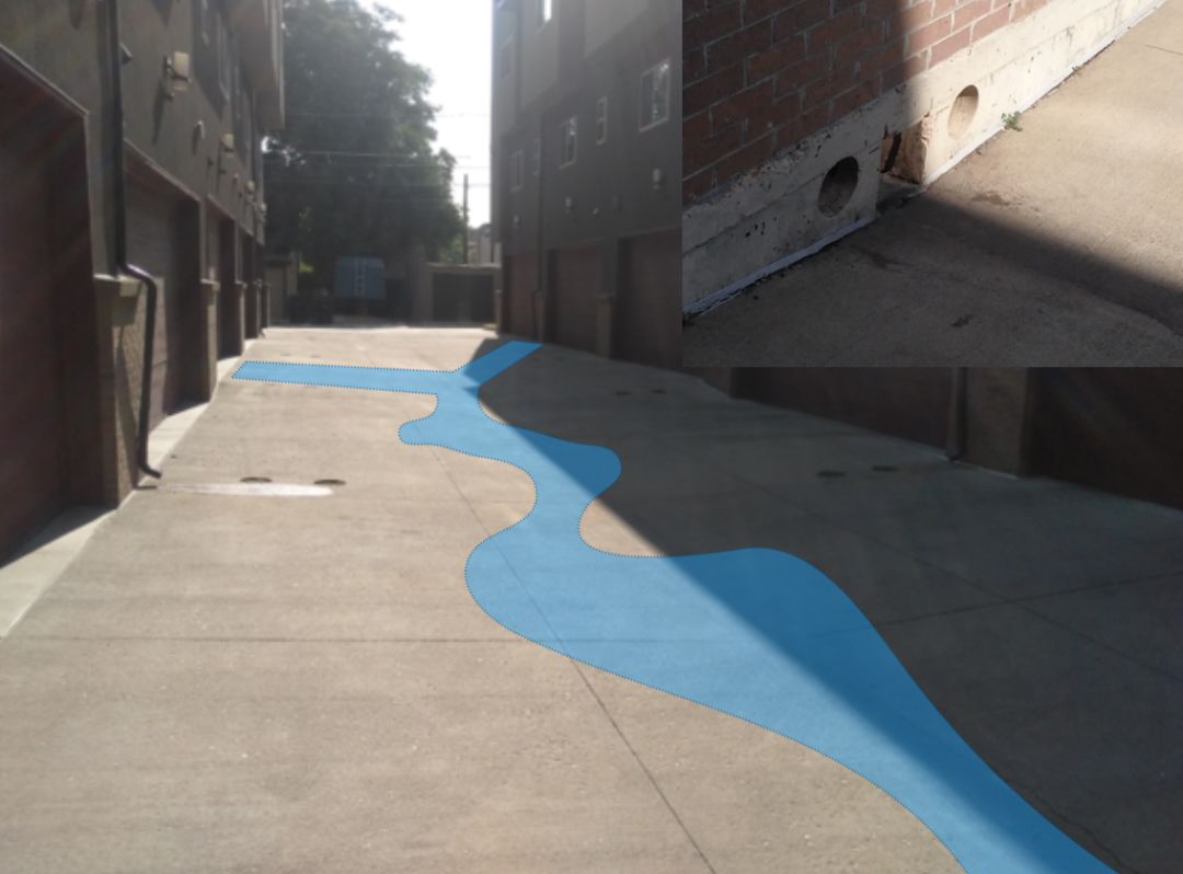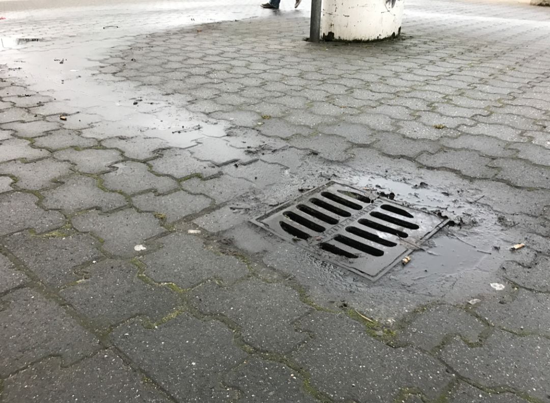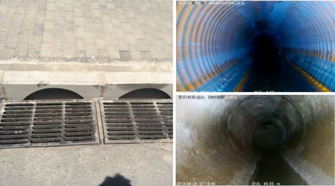 再來看看我們最熟悉的地方,左邊是下水道的雨水篦子,相當(dāng)于嘴的位置,雨水會灌到這里,然后從井里排到管網(wǎng)里。