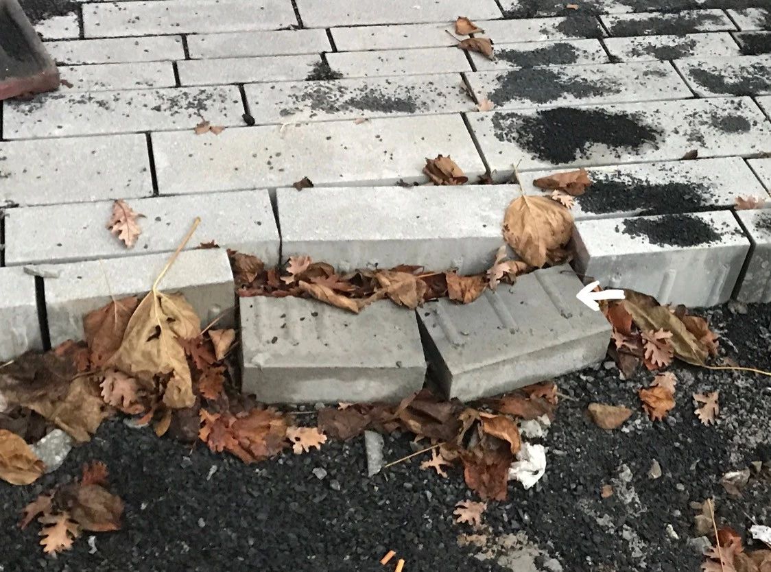 看著好像是普通的磚,但實(shí)際上磚和磚之間有凸起的窄條,這樣一來兩塊磚無法完全貼合,下雨時(shí)水可以從中間滲下去,盡可能地滲透。這也是很重要的一類排雨水設(shè)施。