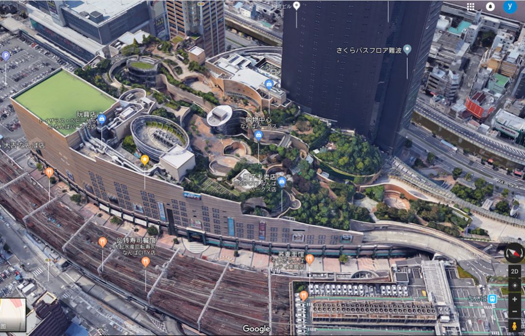 接下來看我們的鄰國,日本。難波的這個項(xiàng)目在日本大阪,大家看到的是一個購物中心。我強(qiáng)烈建議大家,游覽的時(shí)候從一樓走到七樓,這是一個屋頂綠化獲獎的項(xiàng)目。