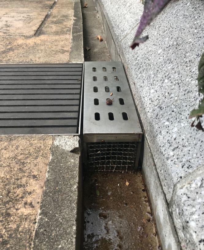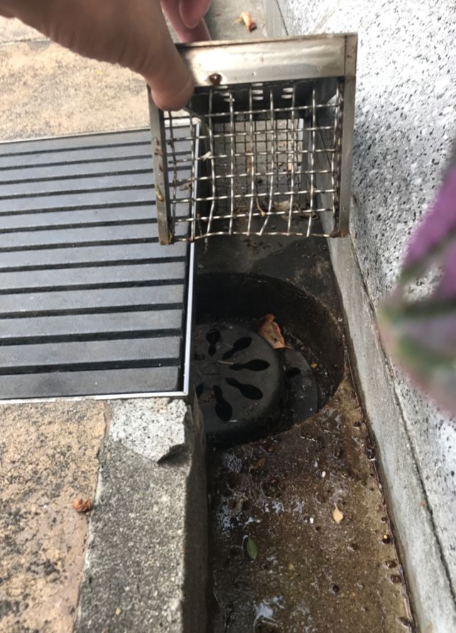 我們看到它的雨水口,里面有一個鐵桶,桶底有很多漏孔,所有的石頭會留在鐵桶里。他們把這個雨水口打開,桶提出來,就可以把石頭倒出去,清理干凈了再放回去。