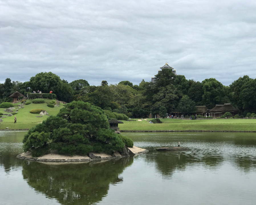 我們看了密集的城區(qū)以后,還去了岡山后樂園,是一個著名的古典園林。日本很多園林里都有碎石沙子鋪成的小路,我們當(dāng)時(shí)一直在想,下雨的話要怎么去清理這些石頭?因?yàn)榍謇砗拖礈焓^是很麻煩的。