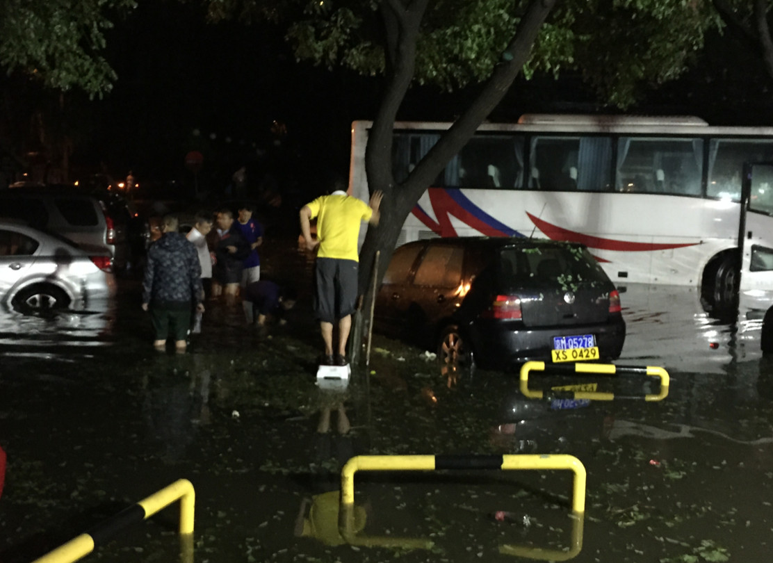 這是2015年8月7日北京的一次降雨。那天我跟太太去討論我們的婚宴,結(jié)束之后回家的路上,開始下冰雹,下大雨。我們一直走了四公里,到家門口發(fā)現(xiàn)周邊的整個區(qū)域全被淹了。