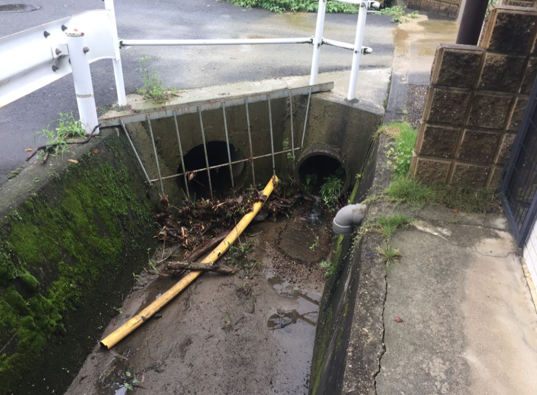 整個黑漆漆的管子,大概一半都已經(jīng)被淤死了。真正來一場雨的時(shí)候,要么這些臟東西全被沖出去,要么整個管子變成這樣的情況。我看大家好像沒有什么不適,那來看幾張照片。