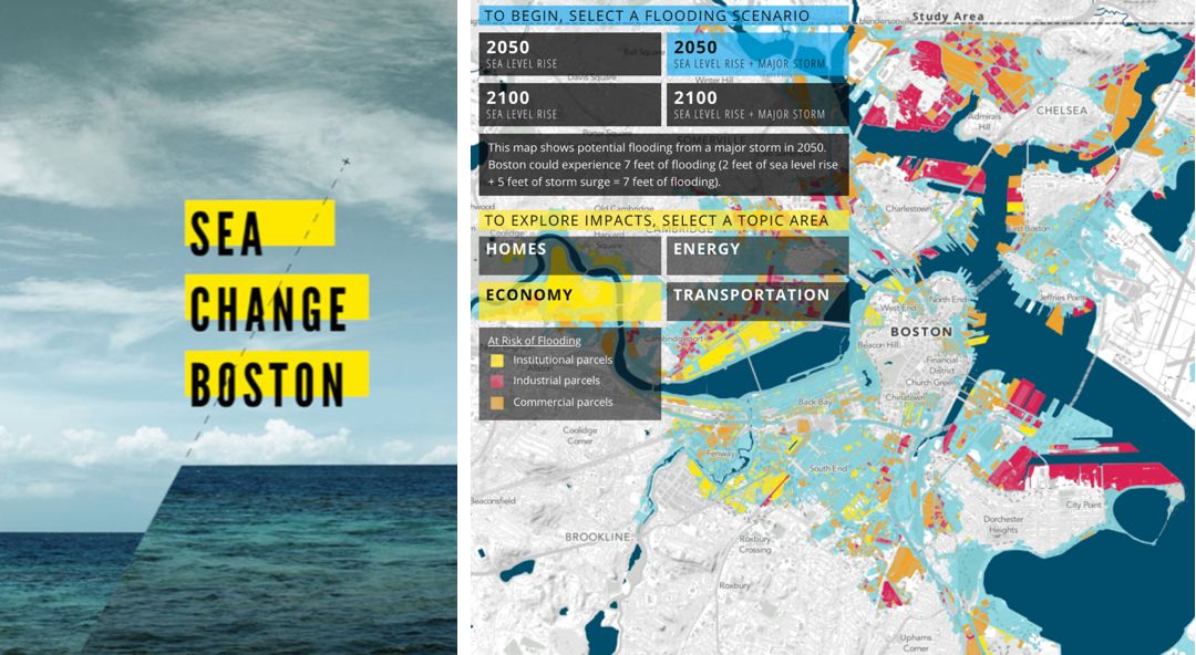 這是一個叫SASAKI的景觀公司,臺風(fēng)之后給波士頓做的新規(guī)劃。他們認(rèn)為一百年后潮水會頂上來,同時(shí)會有更極端的暴雨,城市在這樣雙重壓力的擠壓下,是負(fù)擔(dān)不了現(xiàn)在的功能的。所以需要知道城市里哪個地方是安全的,哪個地方人是要遷走的。