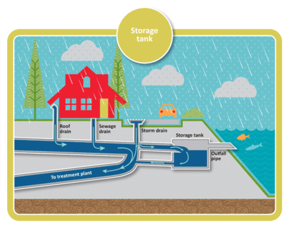 今天的第二個知識點(diǎn),叫合流制。以前沒有那么多費(fèi)用的時(shí)候,我們會把雨水和污水放到同一條溝里排出去。