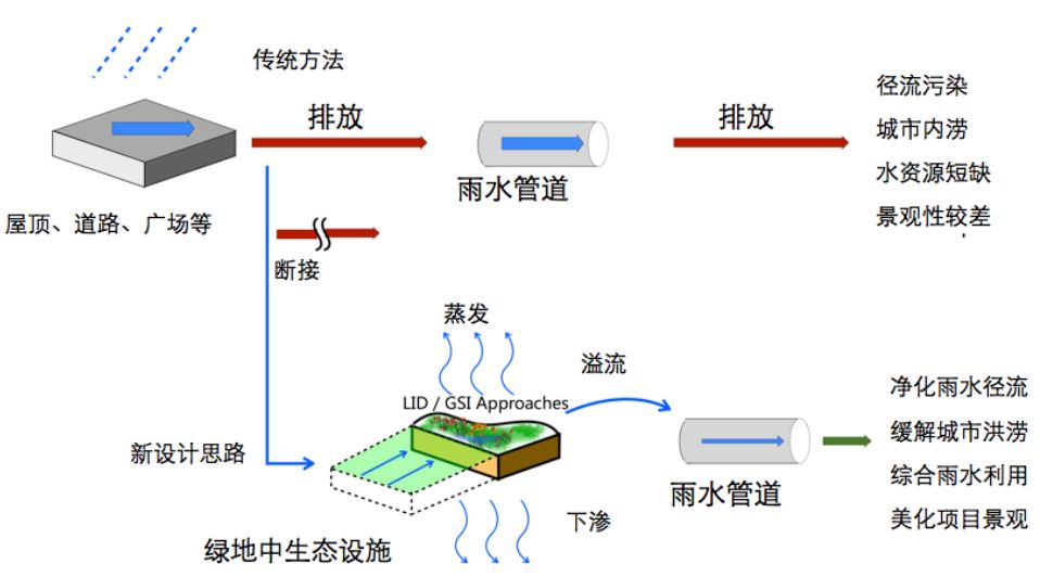 美國以前也做了很多集中的、大的塘,就像我們剛才亦莊的那個項(xiàng)目一樣。后來他們開始分散到城市的每一個街道、每一個街區(qū),用小小的一塊空地把水匯進(jìn)去。