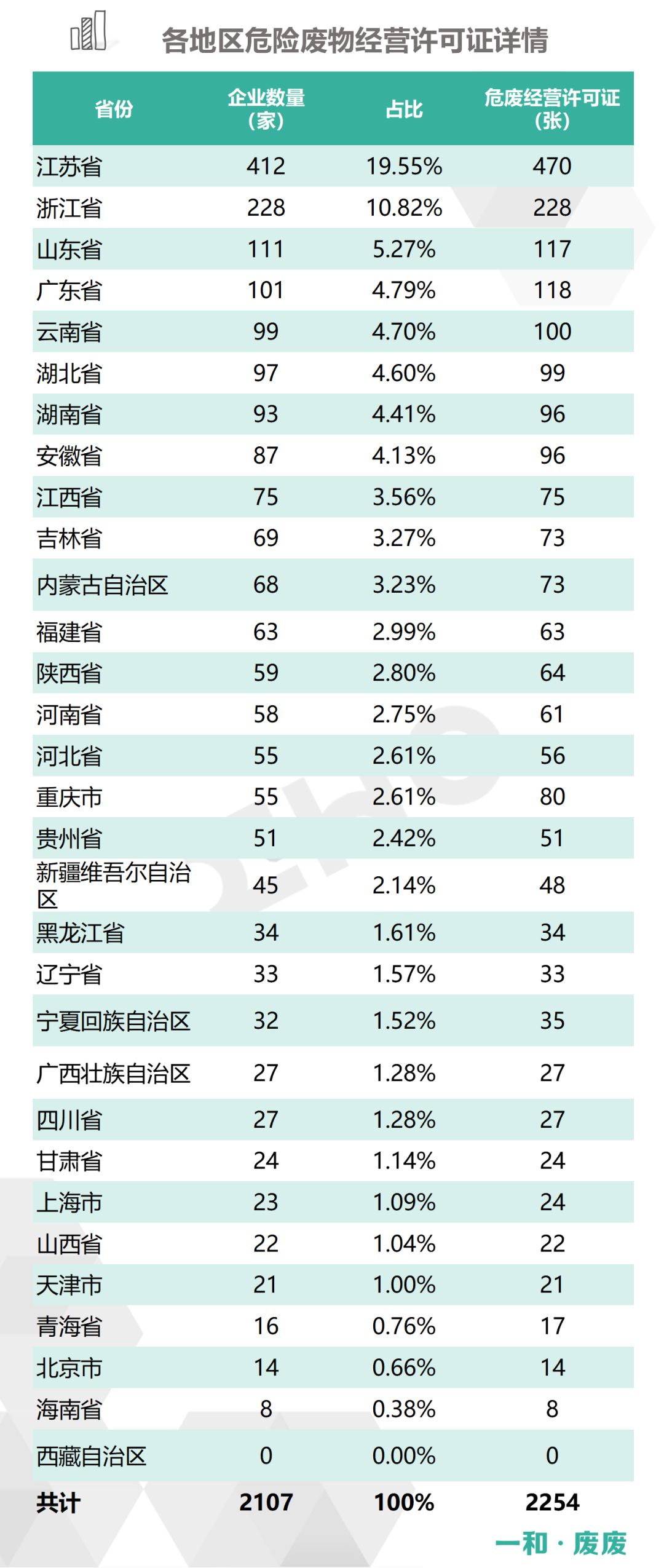 2、統(tǒng)計(jì)范圍:本次數(shù)據(jù)收集統(tǒng)計(jì)的范圍為省級(jí)生態(tài)環(huán)境廳(局)官方公布的持有危險(xiǎn)廢物經(jīng)營(yíng)許可證企業(yè)的數(shù)據(jù),因此由地級(jí)市發(fā)布的醫(yī)療廢物經(jīng)營(yíng)許可證、收集經(jīng)營(yíng)許可證,且未納入省級(jí)生態(tài)環(huán)境廳(局)公布數(shù)據(jù)的部分,并未計(jì)入統(tǒng)計(jì)數(shù)據(jù)中。