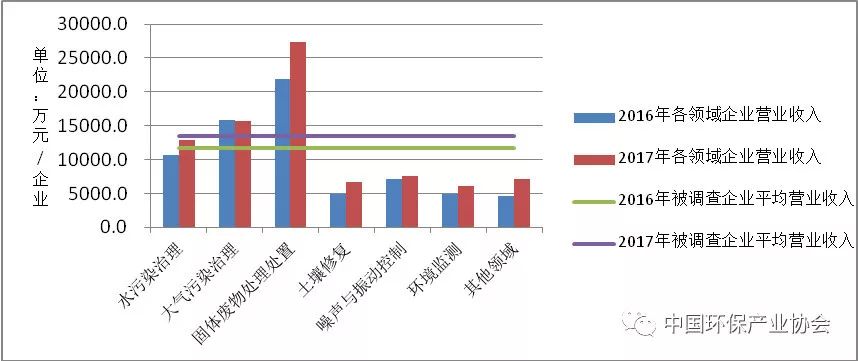 從勞動(dòng)生產(chǎn)率看,規(guī)模以上被調(diào)查企業(yè)人均營業(yè)收入和企業(yè)平均營業(yè)收入均低于2017年規(guī)模以上工業(yè)企業(yè)平均值,反映了與傳統(tǒng)工業(yè)行業(yè)平均水平相比,環(huán)保產(chǎn)業(yè)生產(chǎn)效率較低。與2016年相比,2017年相同樣本企業(yè)的平均人均營業(yè)收入、企業(yè)平均營業(yè)收入均有所提高,分別提高了9.3%、15.4%。