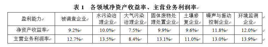 從盈利能力看,被調(diào)查企業(yè)凈資產(chǎn)收益率平均值低于2016年企業(yè)績效評價(jià)標(biāo)準(zhǔn)值中工業(yè)企業(yè)凈資產(chǎn)收益率的優(yōu)秀值。與2016年相比,2017年相同樣本企業(yè)凈資產(chǎn)收益率和主營業(yè)務(wù)利潤率均有所下滑。反映我國環(huán)保企業(yè)資產(chǎn)收益能力及獲利水平出現(xiàn)降低趨勢,盈利能力有待提升。