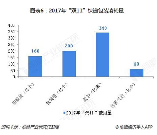 據(jù)測算,2017年“雙11”巨大交易額背后:快遞業(yè)包裝物回收率很低400.6億件快遞產(chǎn)生約800萬噸廢棄物,占全國生活垃圾總量的2%。其中,消耗塑膠袋超過160億個(gè)、包裝箱200億個(gè)、膠帶340億米、包裹氣泡60億個(gè)。這意味著隨之產(chǎn)生的海“雙11”巨大交易額背后:快遞業(yè)包裝物回收率很低包裝垃圾可以擺滿近40萬個(gè)足球場,僅封箱膠帶就可繞赤道超過800圈。