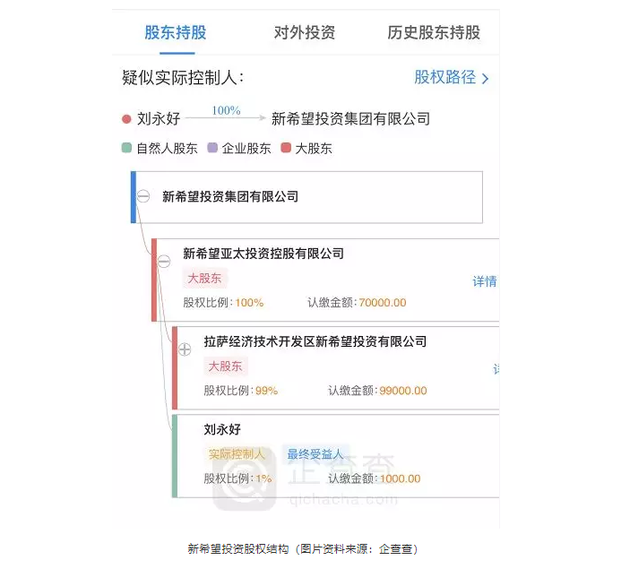 據(jù)悉,新希望投資是新希望集團(tuán)旗下的投資平臺(tái),由新希望亞太投資控股有限公司控股,注冊(cè)地址位于拉薩經(jīng)濟(jì)開發(fā)區(qū)。經(jīng)營范圍包括:創(chuàng)業(yè)投資(不得從事?lián):头康禺a(chǎn)業(yè)務(wù);不得參與發(fā)起或管理公募或私募證券投資基金、投資金融衍生品);股權(quán)投資(不含公募基金。不得從事證券、期貨類投資;不得參與發(fā)起或管理公募或私募證券投資基金、投資金融衍生品;不得從事房地產(chǎn)和擔(dān)保業(yè)務(wù));投資管理(不含金融和經(jīng)紀(jì)業(yè)務(wù)。不得從事證券、期貨類投資;不得向非合格投資者募集、銷售、轉(zhuǎn)讓私募產(chǎn)品或者私募產(chǎn)品收益權(quán));資產(chǎn)管理(不含金融資產(chǎn)管理和保險(xiǎn)資產(chǎn)管理)等。