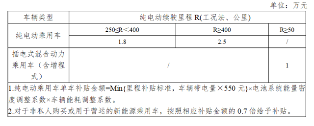 新能源乘用車補(bǔ)貼標(biāo)準(zhǔn)