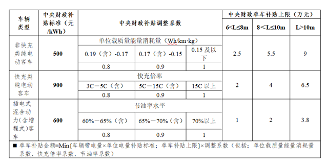 新能源客車補(bǔ)貼標(biāo)準(zhǔn)