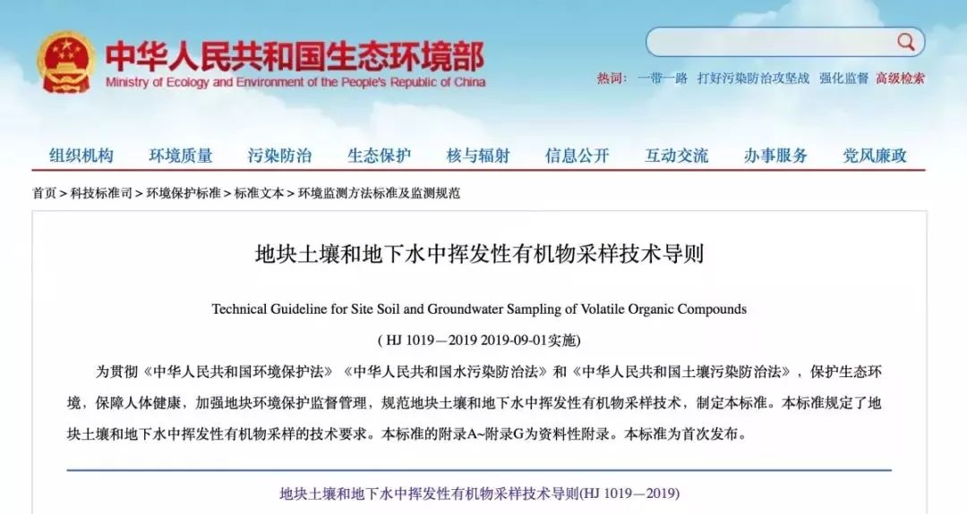 近日,生態(tài)環(huán)境部為貫徹《中華人民共和國(guó)環(huán)境保護(hù)法》《中華人民共和國(guó)水污染防治法》和《中華人民共和國(guó)土壤污染防治法》,保護(hù)生態(tài)環(huán)境,保障人體健康,加強(qiáng)地塊環(huán)境保護(hù)監(jiān)督管理,規(guī)范地塊土壤和地下水中揮發(fā)性有機(jī)物采樣技術(shù),出臺(tái)了《地塊土壤和地下水中揮發(fā)性有機(jī)物采樣技術(shù)導(dǎo)則》。