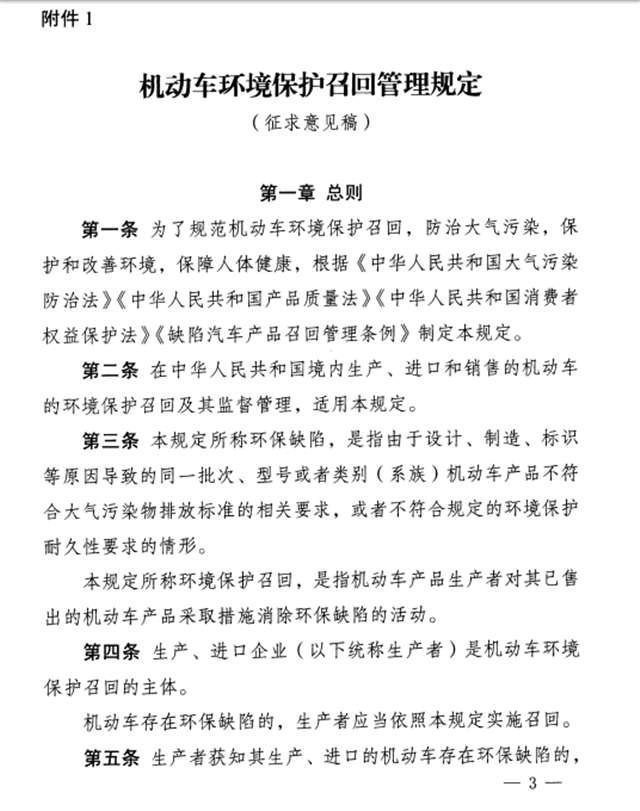 附件:1、機(jī)動(dòng)車環(huán)境保護(hù)召回管理規(guī)定(征求意見(jiàn)稿)