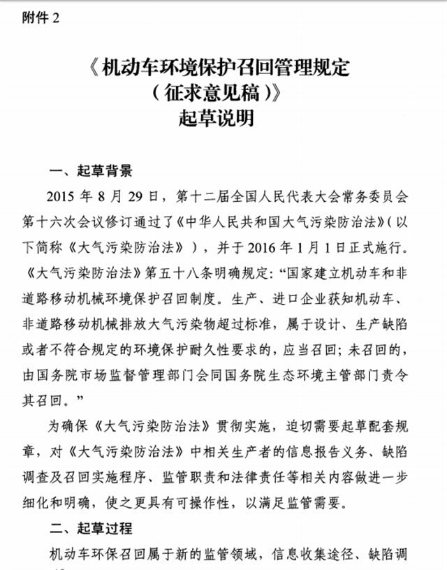 2、《機(jī)動(dòng)車環(huán)境保護(hù)召回管理規(guī)定(征求意見(jiàn)稿)》起草說(shuō)明