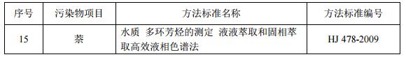 四、 “水污染物濃度測定方法標(biāo)準(zhǔn)”表中增加廢水中萘的監(jiān)測分析方法: