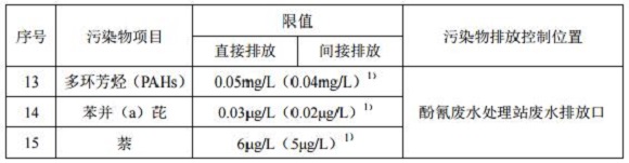 二、 表 1、表 2、表 3 中增加表注“注 1):酚氰廢水單獨(dú)處 理,執(zhí)行括號外排放限值;酚氰廢水與生活污水等其他廢水混合 處理,執(zhí)行括號內(nèi)排放限值。”