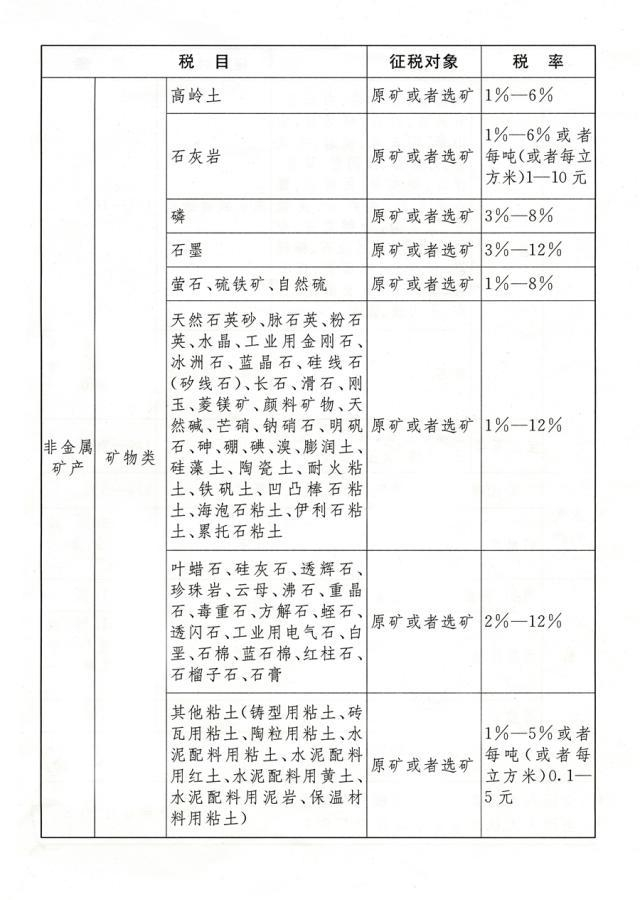 應(yīng)稅資源的具體范圍,由本法所附《資源稅稅目稅率表》(以下稱《稅目稅率表》)確定。