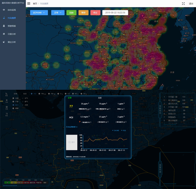 平臺(tái)具備GIS地圖展示、環(huán)境數(shù)據(jù)綜合監(jiān)視、報(bào)警通知、生態(tài)環(huán)境預(yù)測(cè)預(yù)報(bào)、監(jiān)測(cè)數(shù)據(jù)溯源回放、綜合報(bào)表生成/導(dǎo)出、生態(tài)環(huán)境指標(biāo)排名、數(shù)據(jù)對(duì)比分析、移動(dòng)APP端展示等應(yīng)用功能,便于用戶對(duì)生態(tài)環(huán)境數(shù)據(jù)進(jìn)行第一時(shí)間掌握,有效提高監(jiān)管能力,并提供多維度的數(shù)據(jù)統(tǒng)計(jì)、分析,幫助用戶進(jìn)行生態(tài)環(huán)境治理、改善。