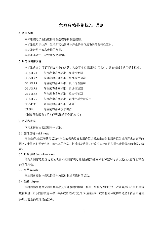 《危險(xiǎn)廢物鑒別標(biāo)準(zhǔn) 通則》(GB 5085.7-2019)。