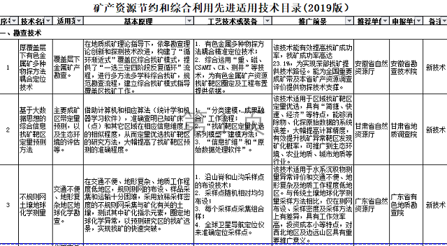 《礦產(chǎn)資源節(jié)約和綜合利用先進(jìn)適用技術(shù)目錄(2019版)》.xls