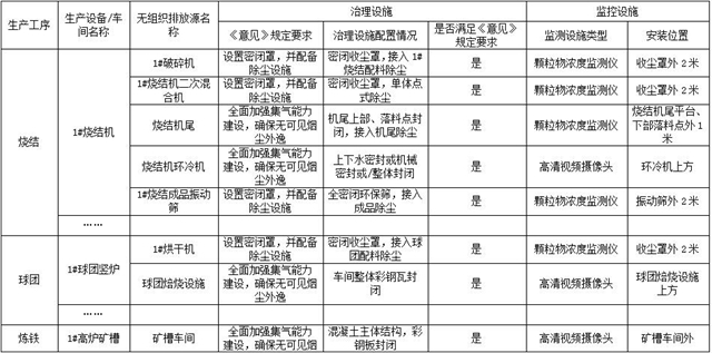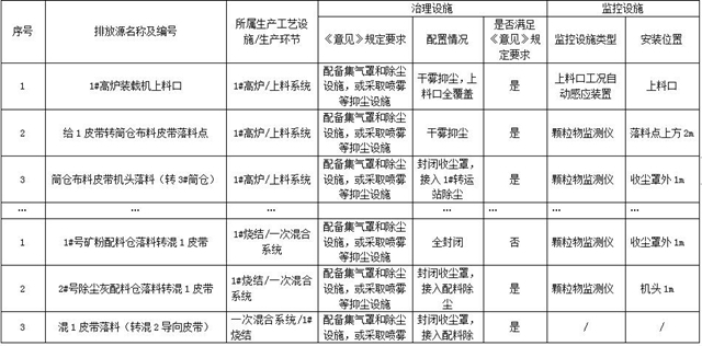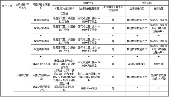 按照《意見》和《排污許可證申請與核發(fā)技術(shù)規(guī)范 鋼鐵行業(yè)》(HJ846-2017)要求,對全廠相應(yīng)有組織排放源進(jìn)行全面排查,建立有組織排放源清單,明確治理技術(shù)路線和監(jiān)控措施,清單格式和內(nèi)容可參考附表1。